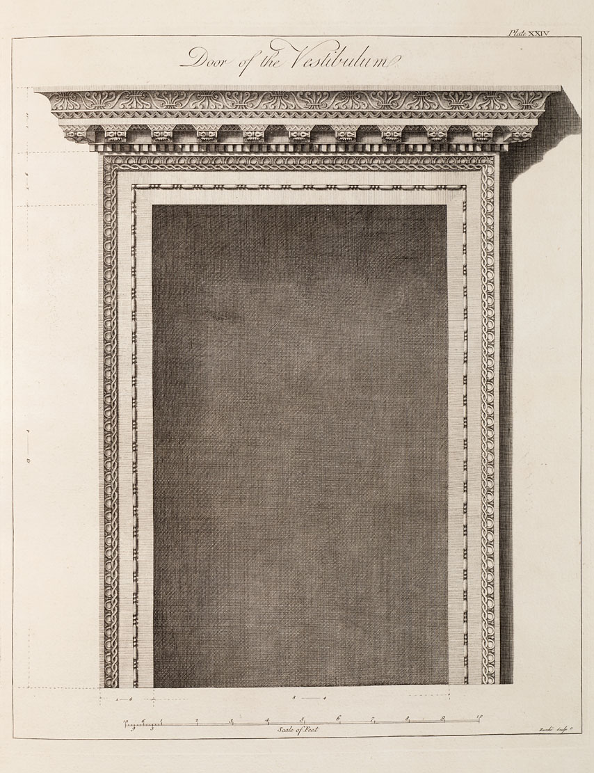 travelogue_title: Plate XXIV. Door of the vestibulum, 1757, in: Adam, Robert, Ruins of the Palace of the Emperior Diocletian at Spalatro in Dalmatia, London, 1764