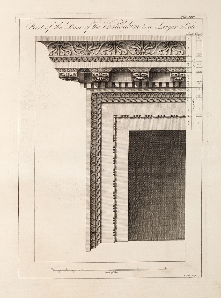 travelogue_title: Plate XXV. Part of the door of the vestibulum to a larger scale, 1757, in: Adam, Robert, Ruins of the Palace of the Emperior Diocletian at Spalatro in Dalmatia, London, 1764
