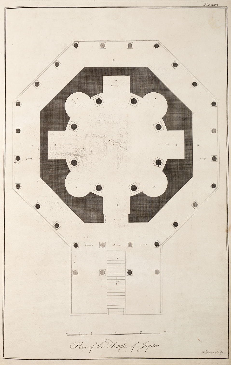 travelogue_title: Plate XXVI. Plan of the Temple of Jupiter, 1757, in: Adam, Robert, Ruins of the Palace of the Emperior Diocletian at Spalatro in Dalmatia, London, 1764