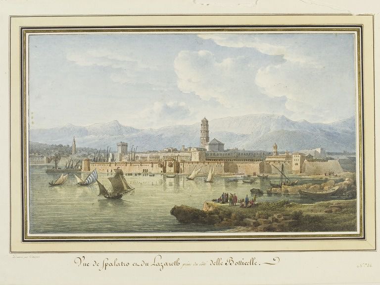 travelogue_title: Vue de Spalatro et du Lazareth, Prise du côté Dellé Botticelle, 1782, in: Voyage Pittoresque et Historique de l'Istrie et de la Dalmatie, [complied by Lavallée, Joseph], Paris, 1802